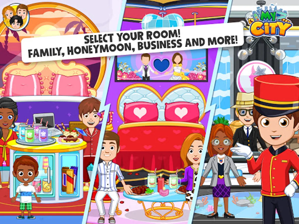 * Roleplay with family and friends, dress up in various clothing, and discover every room in My City : Hotel.