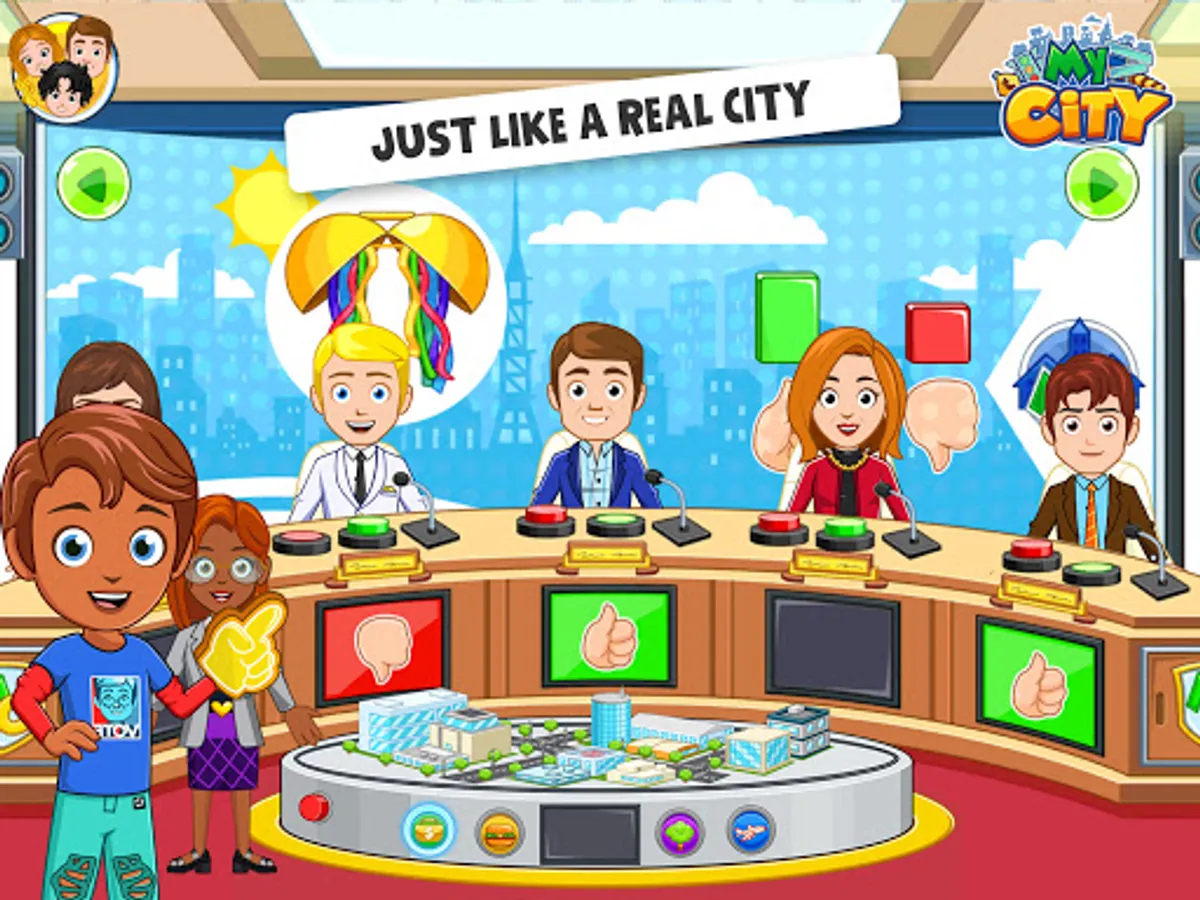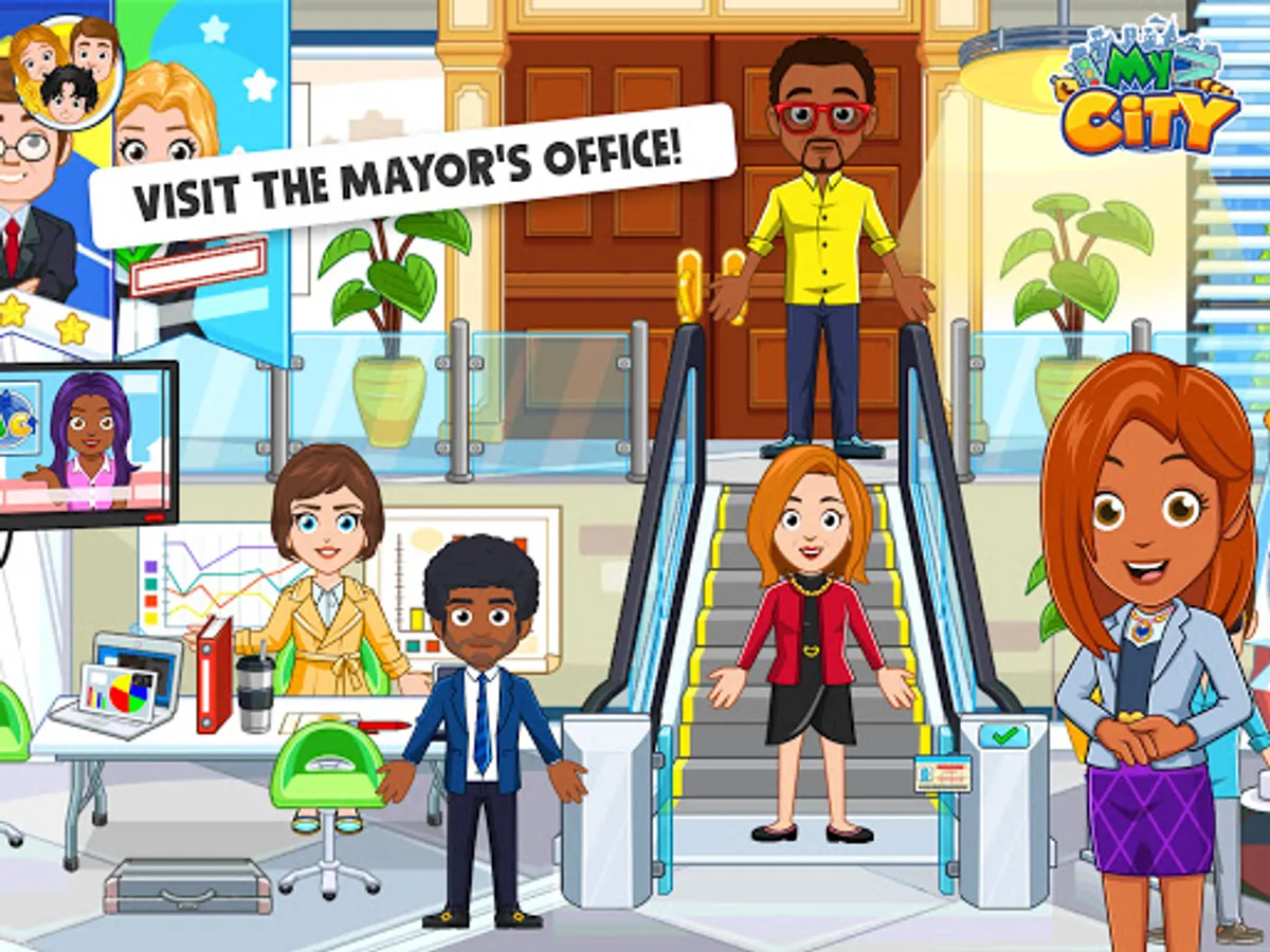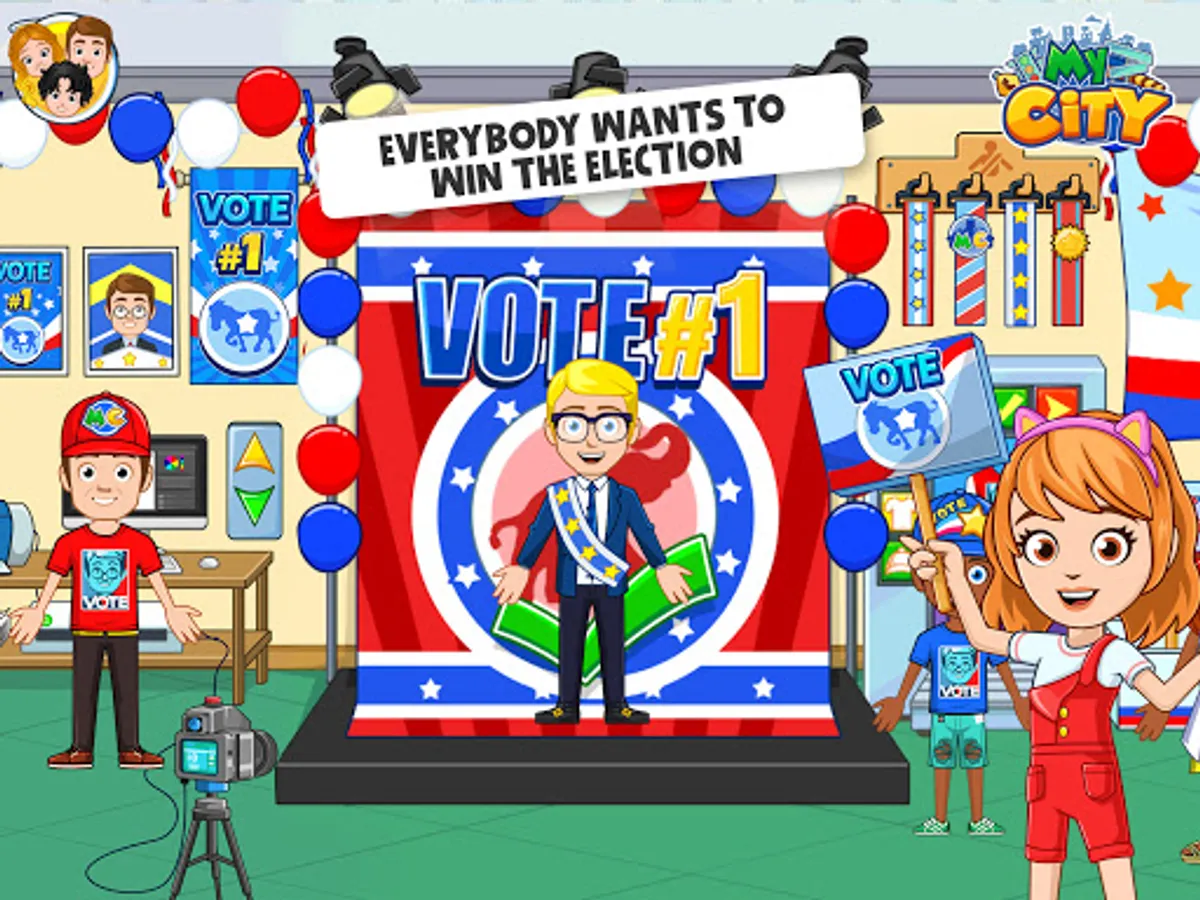 It's Election Day in My City and everyone is excited! Who will win and who shall lose, only you get to decide. Everyone wants to be the new mayor for My City - who will you vote for? Sit in the Mayor's office, visit the city hall and explore all rooms, rollout your Election Day posters and take care of your city. Everything is possible in this new My City game!