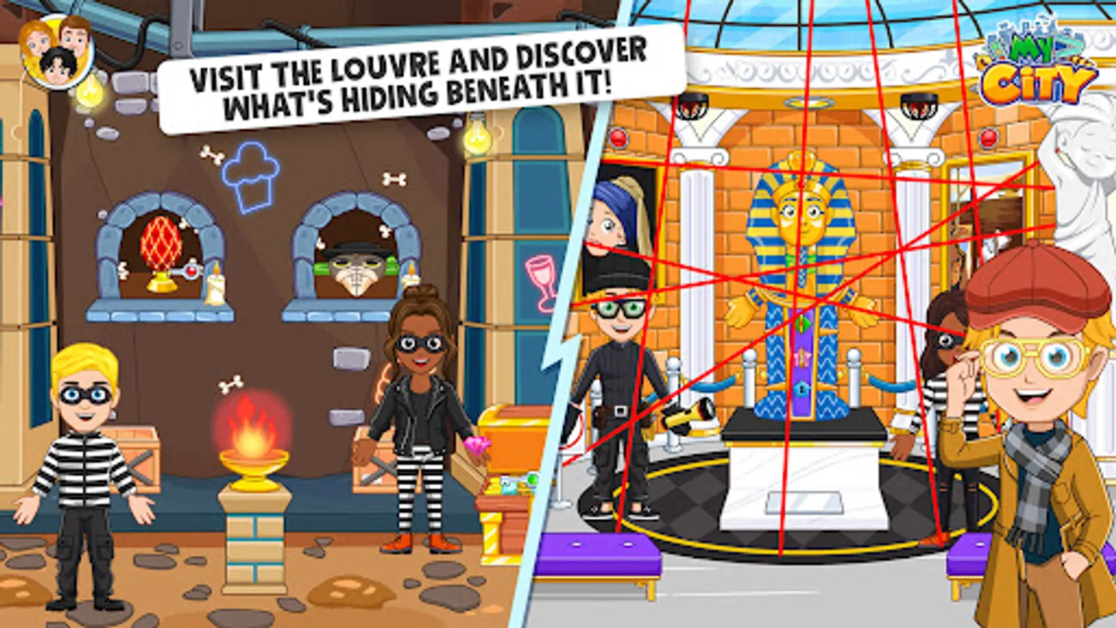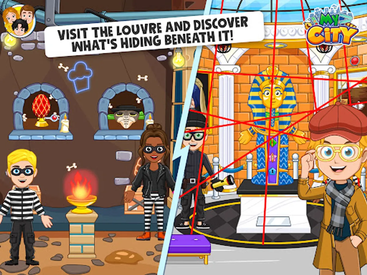 Fun Locations:We have created many exciting new locations for kids to play and explore: Eiffel tower, Moulin rouge, Museum, Parc Monceau, Louvre Museum, Cafes, and discover why the famous painting and treasures are missing.