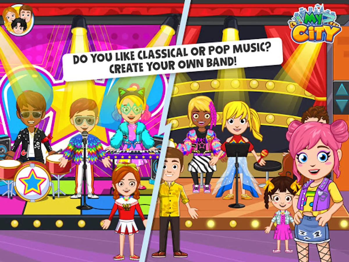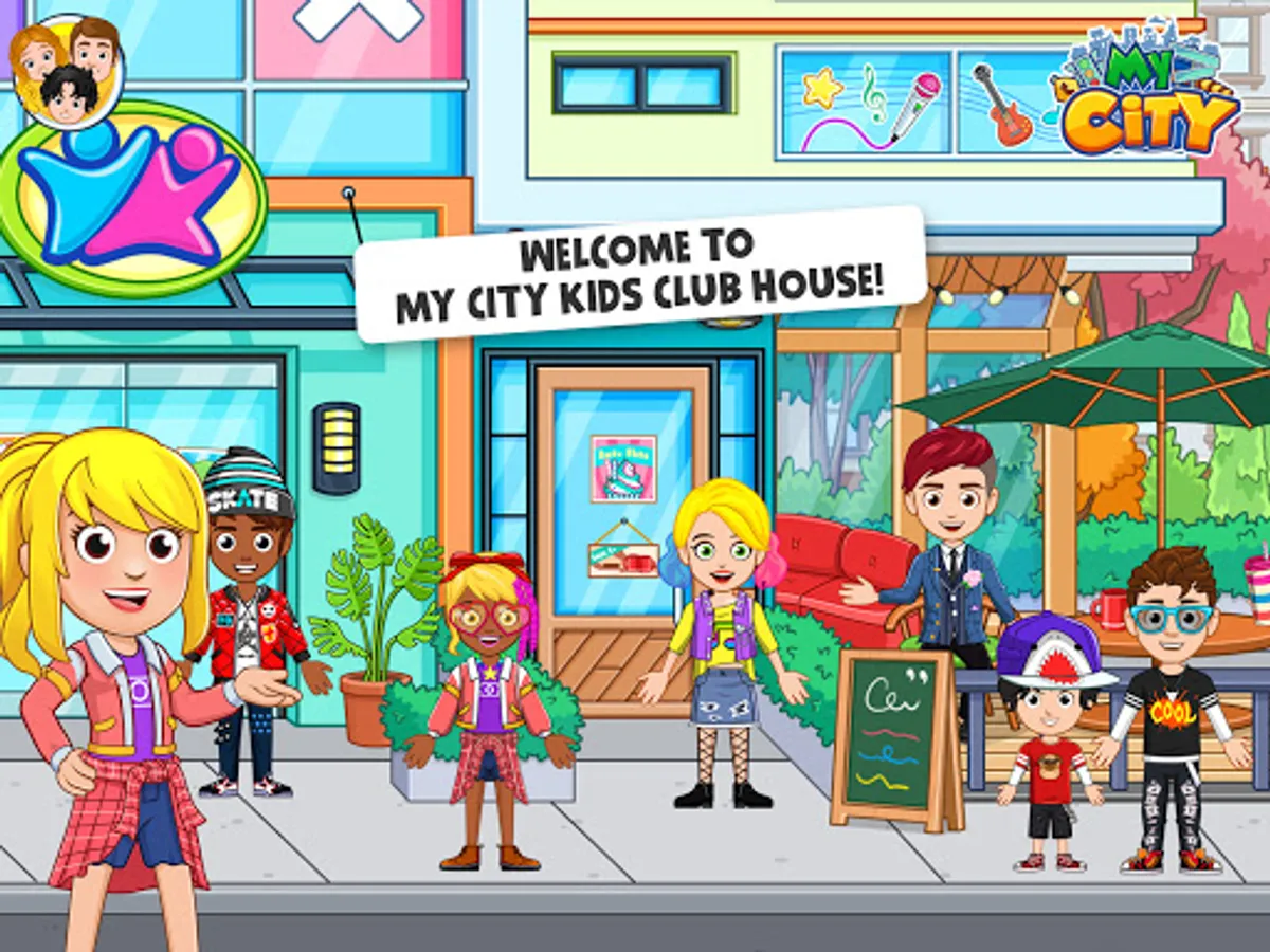 My City has just opened the brand new Kids Club House! This location has 6 floors! All packed with fun and exciting things to discover and explore. Visit the Rooftop pool, play laser tag or chill out in the arcade room after playing in a music band with your friends. With so many rooms, locations and characters every time you play My City : Kids Club House you will have a new story to tell. This game never gets boring. And don't forget the best thing about My City games is that you can move your characters between other My City games. So bring your favourite character over and let the fun begin!