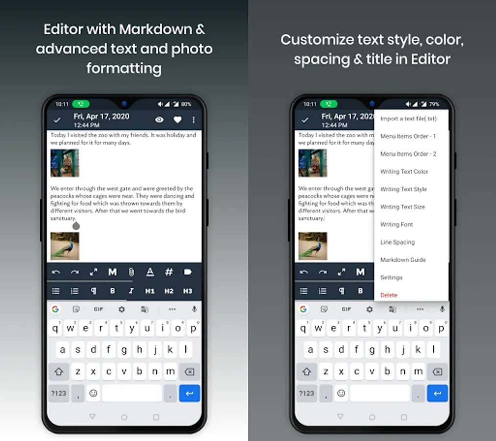 Digital journal: Memorize is a digital journal, which means that you can access your entries from anywhere, at any time. You can write on your phone, tablet and backup to your Google Drive.