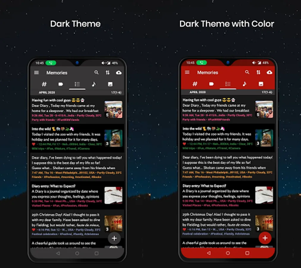 Memorize is a powerful self-improvement and productivity tool that helps you stay organized, set and track goals, and make the most of your time. The intuitive interface and advanced search capabilities make it easy to find and revisit your favorite moments, while our custom reminder system ensures you never miss an important event. customizable themes and fonts, you can make your diary look and feel exactly the way you want it to.