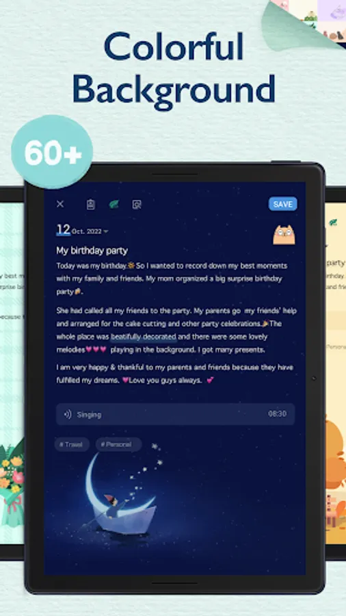 Choose diary backgrounds when writing journal entries, and try how lovely your private journals will be.