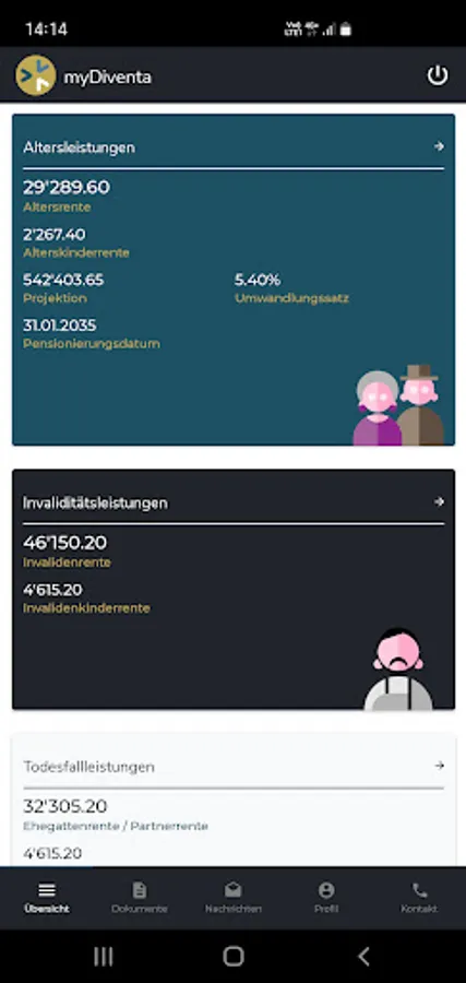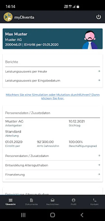 By using myDiventa you can not only call up your personal pension fund data, but also run your own simulations and see the changes in benefits. The insured person's app is intended to make pension planning easier for you.