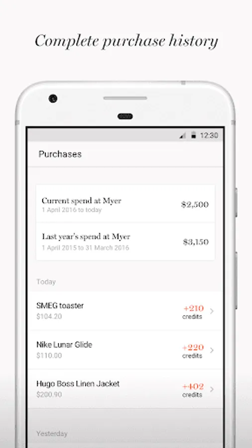 Purchases – A detailed transaction history of all of the purchases you have made using your MYER one Card.