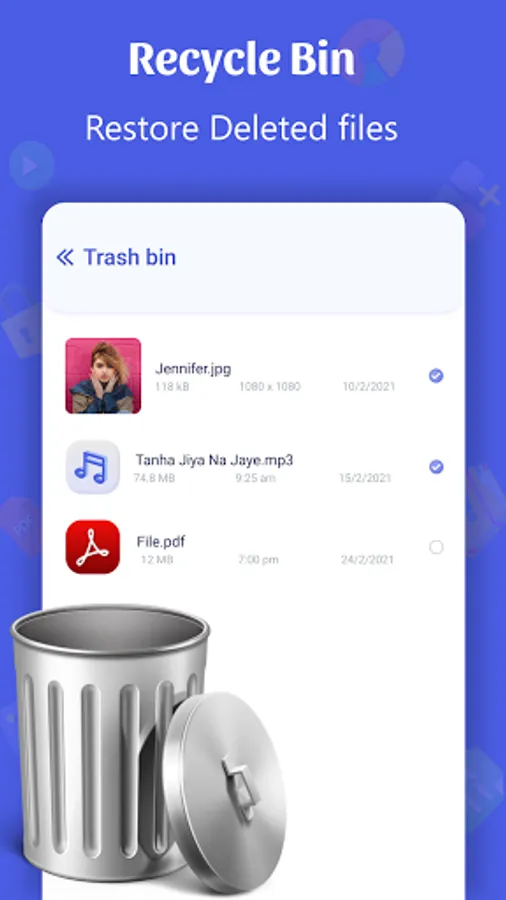 Install my files in samsung android smartphone including my files with recycle bin. You can my files move to SD Card.