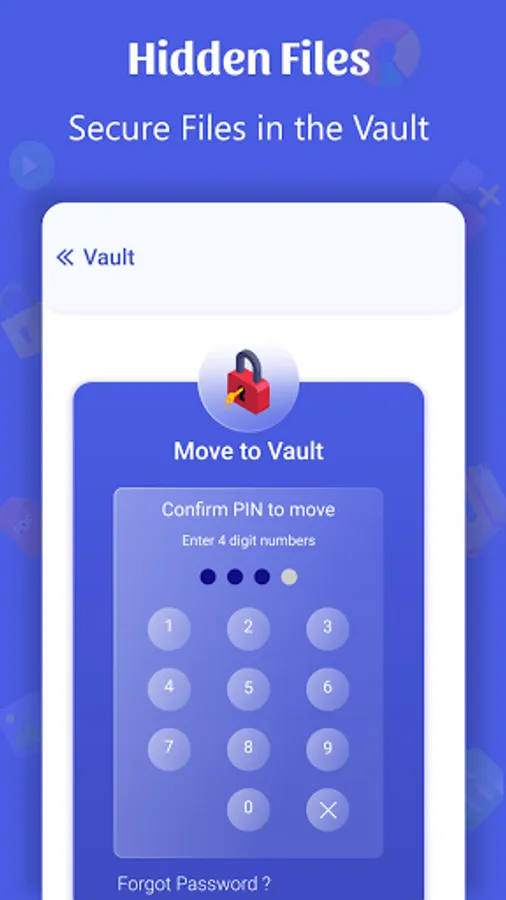 You can also securely hide files, images, pictures and secret pictures in the vault section.