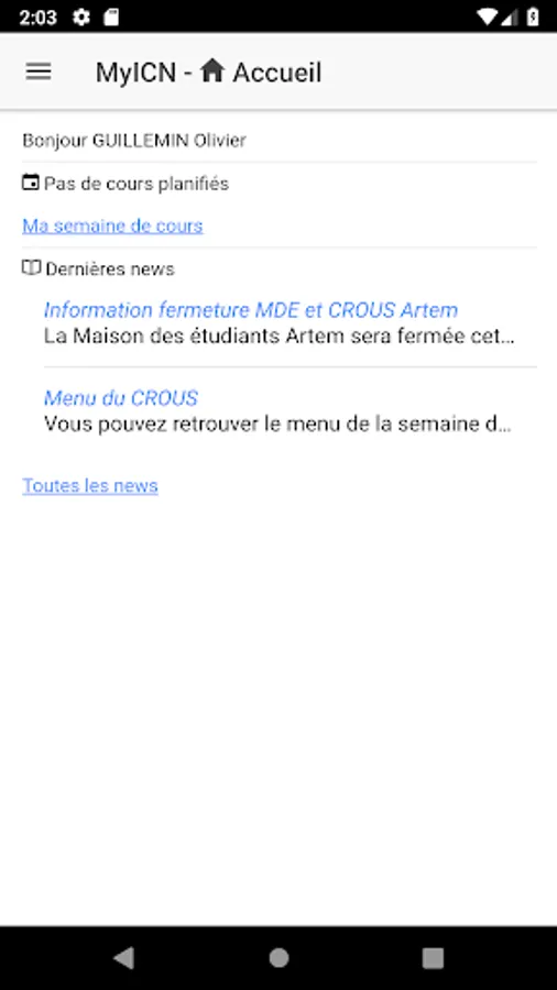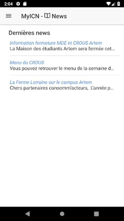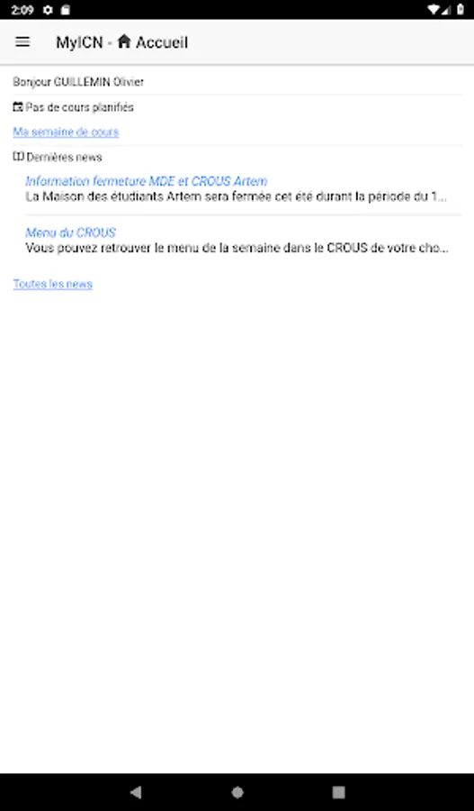 In this first released version of MyICN Mobile, you will find your personal calendar and the last news of ICN Business School