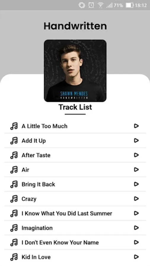 Enjoy Shawn Mendes songs complete with lyrics without an internet connection with a modern design and very easy to use.