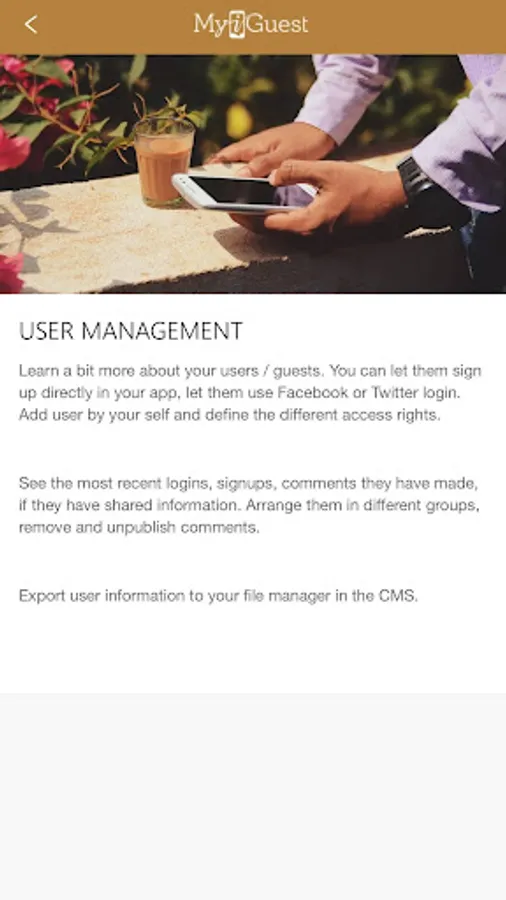MYiGuest is a mobile applicationthat husband's information, offers and reservations moonrise available for guests and visitors.