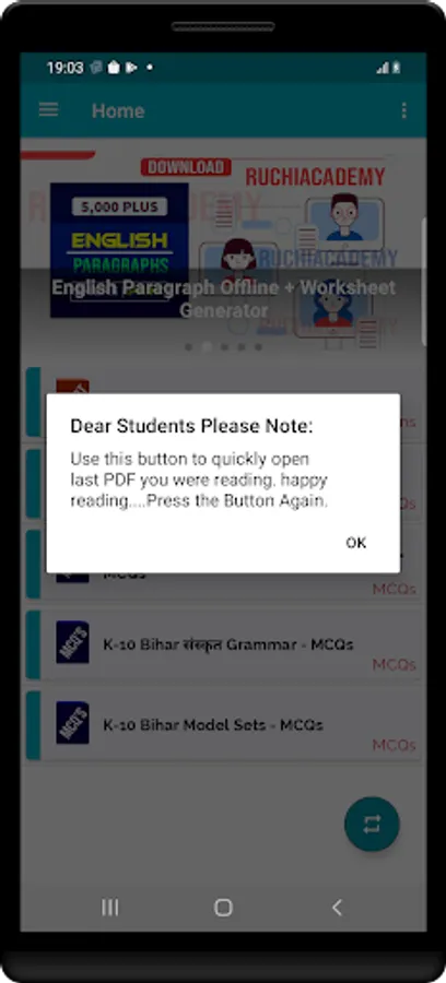🔄 Open Last view Chapter/Topic