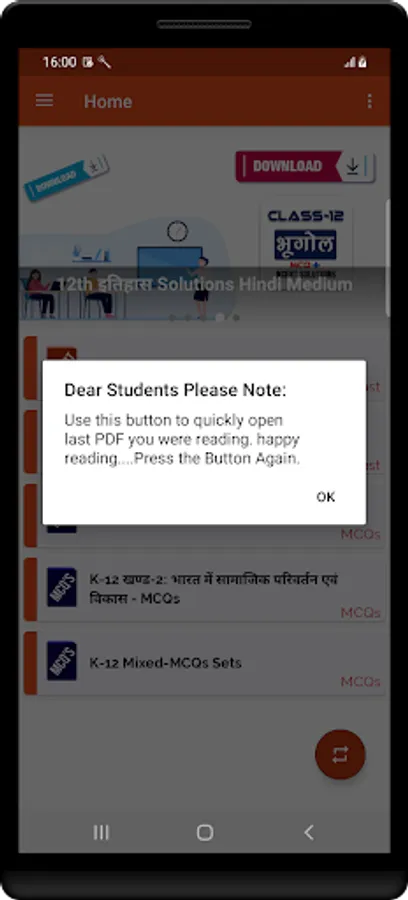 🔄 Open Last view Chapter/Topic