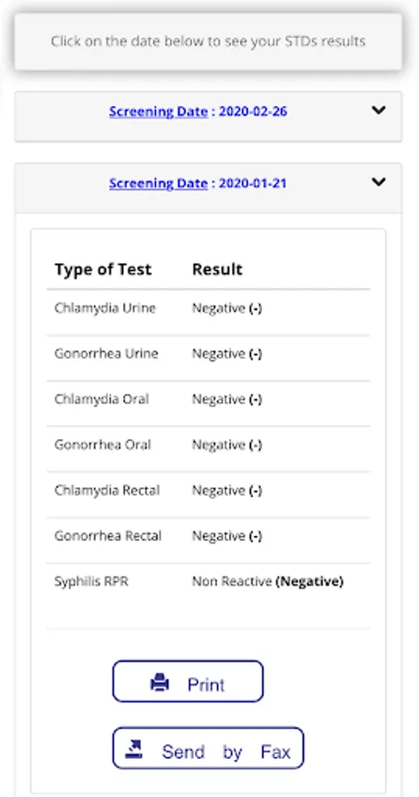 Now you are able to track your rapid tests results, STDs tests results, create a pdf or send your results by fax.