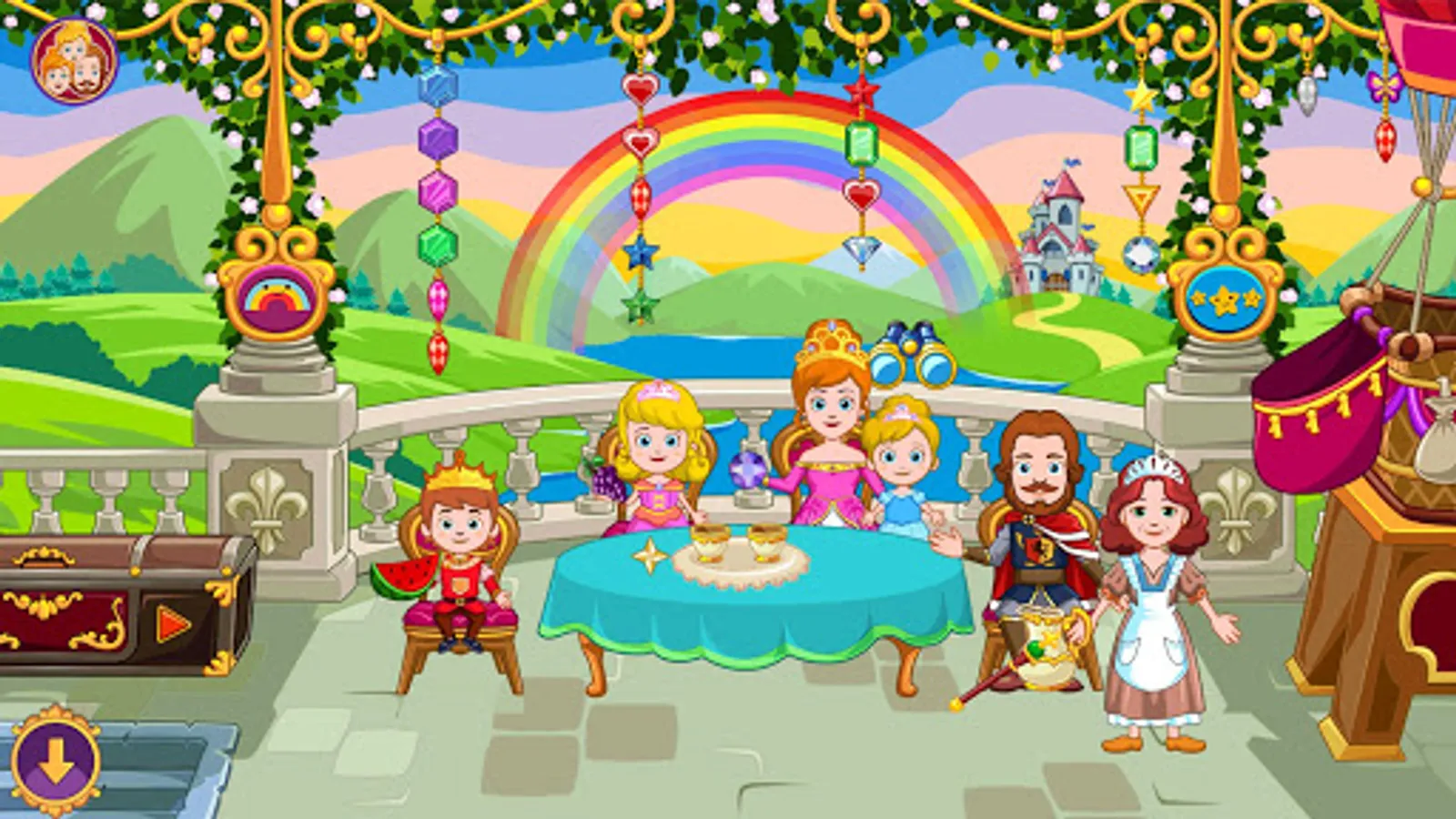 My pretty Little Princess Castle game is full of magic, fantasy, and fun for your kid! Experience true princess fairy tale life and explore a Magic Kingdom! Would you like to drink tea with King and Queen? Or to play some Castle Games and find a spooky secret in the basement! Everything is possible in My Town Princess World.