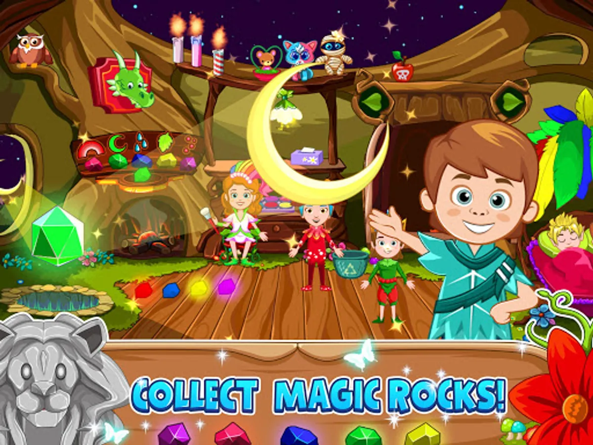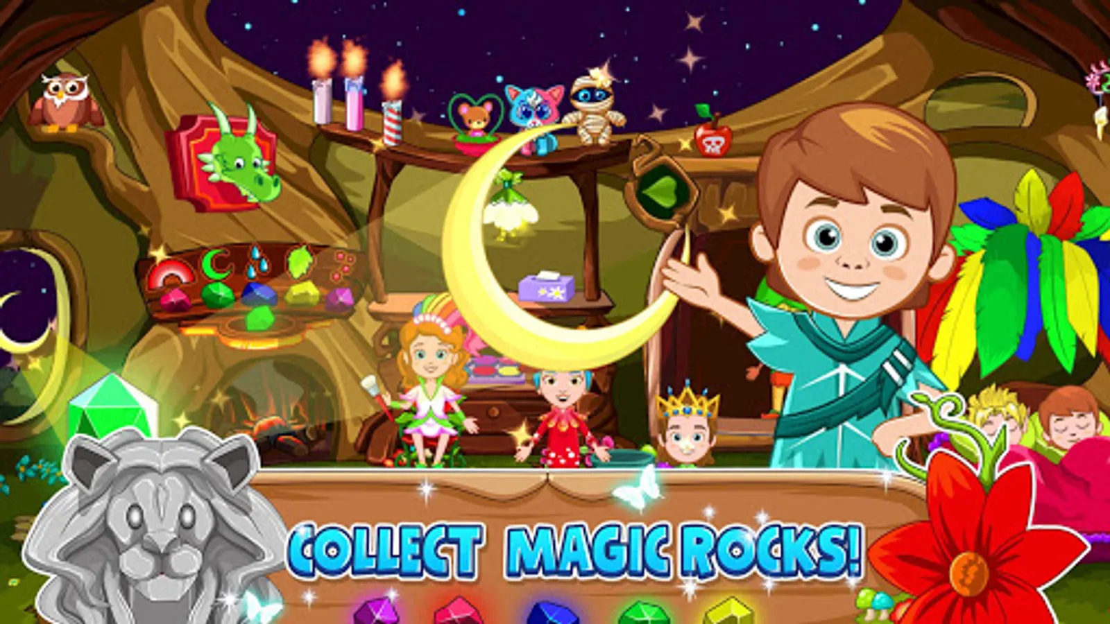 Let’s start the fairy tale adventure where everything is possible! Fly with the balloon to see thre Magic Kingdom from the sky. Cook favorite food in the Tree House and make sure to collect all magic rocks Play and discover the Magic Kingdom and Fairy Town in this dollhouse game for kids! It’s that simple!