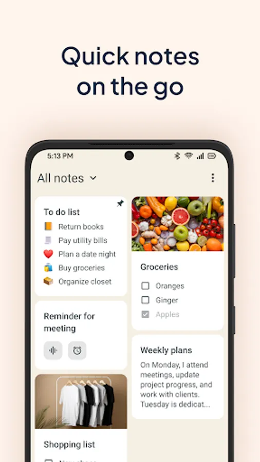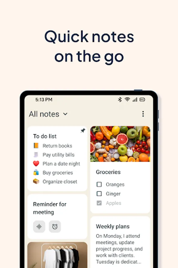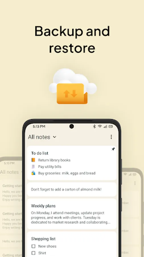 Safeguard the thoughts that you jot down, a checklist or voice notes by backing them up to the cloud or internal storage.
