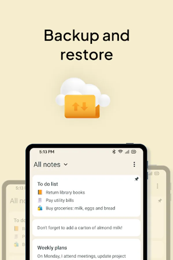 Restore your notebook entries from previous backups, giving you peace of mind even if your device is lost, damaged, or replaced.