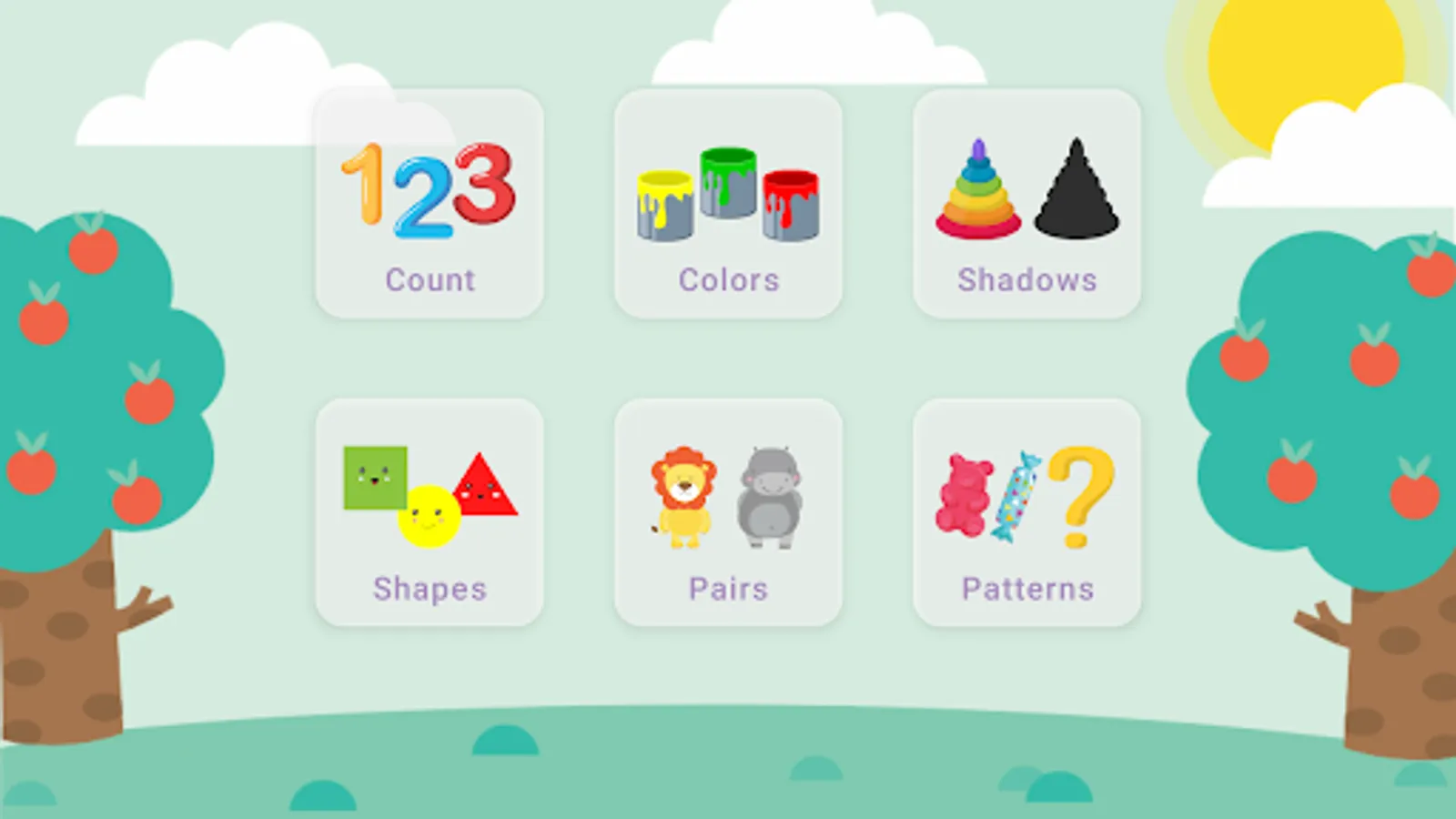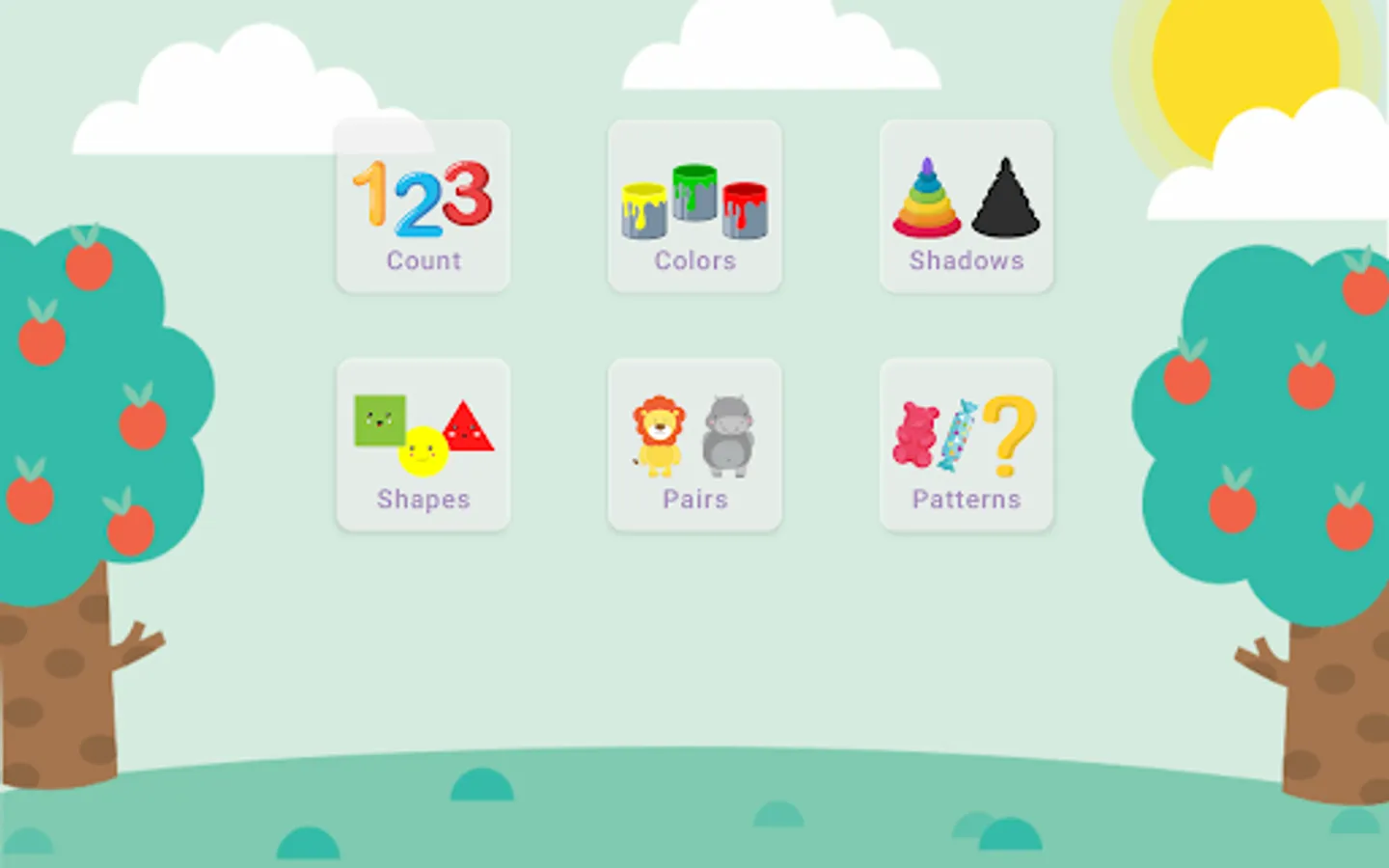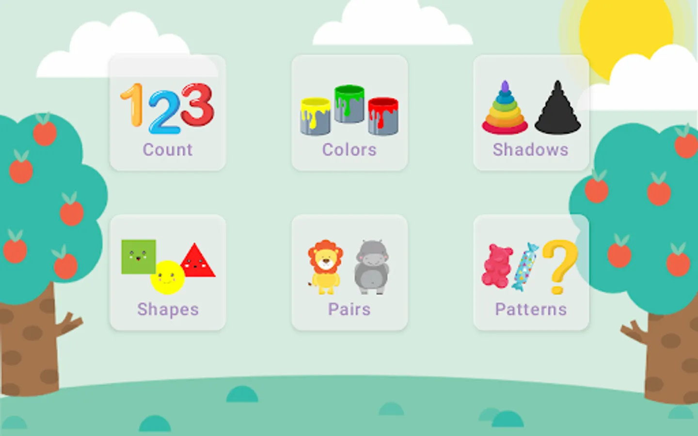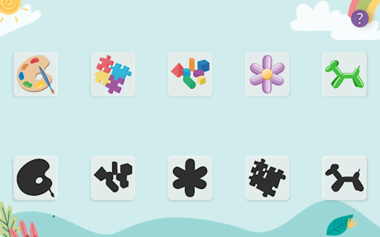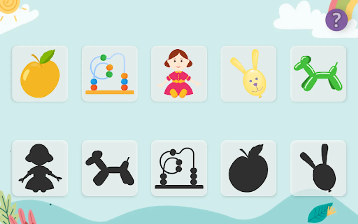 The collection is made up of six mini-games where you can practice colors, shapes, numbers, recognition of silhouettes, animals and patterns.