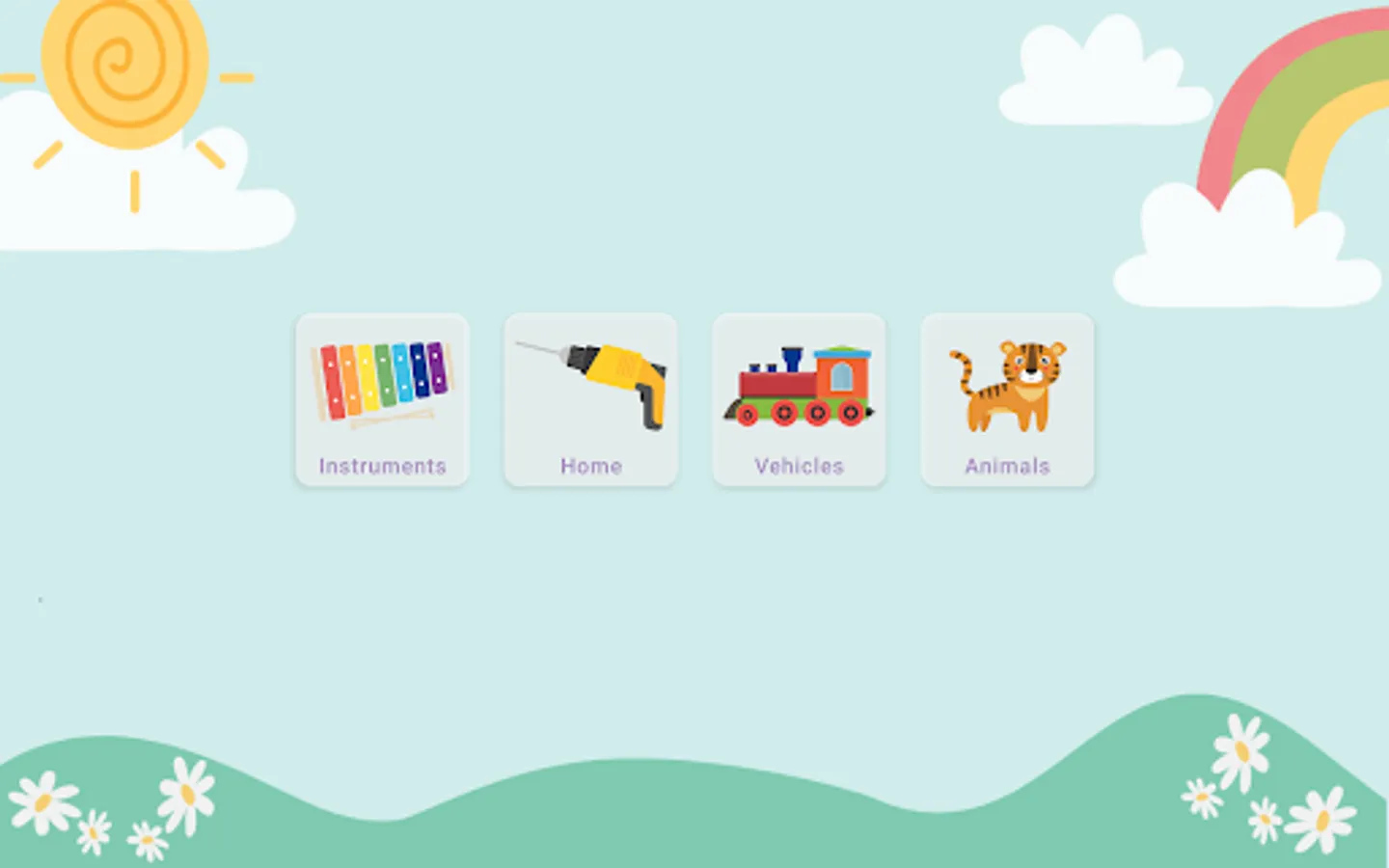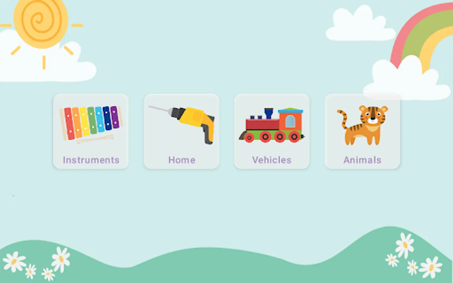 The game is divided into four mini-games, where they can learn the real sounds of different animals, typical household objects, musical instruments and various vehicles.