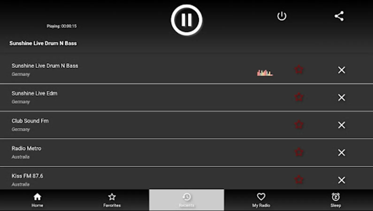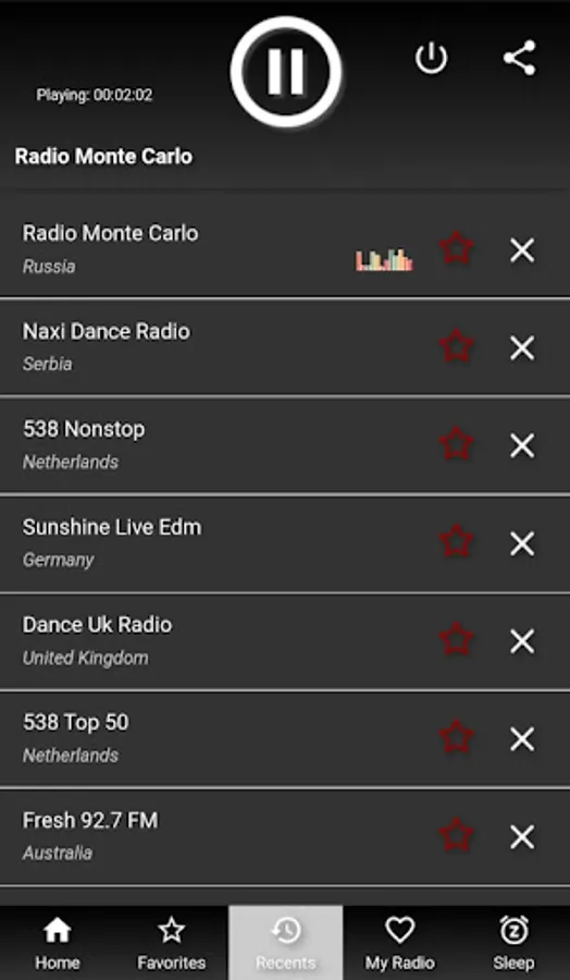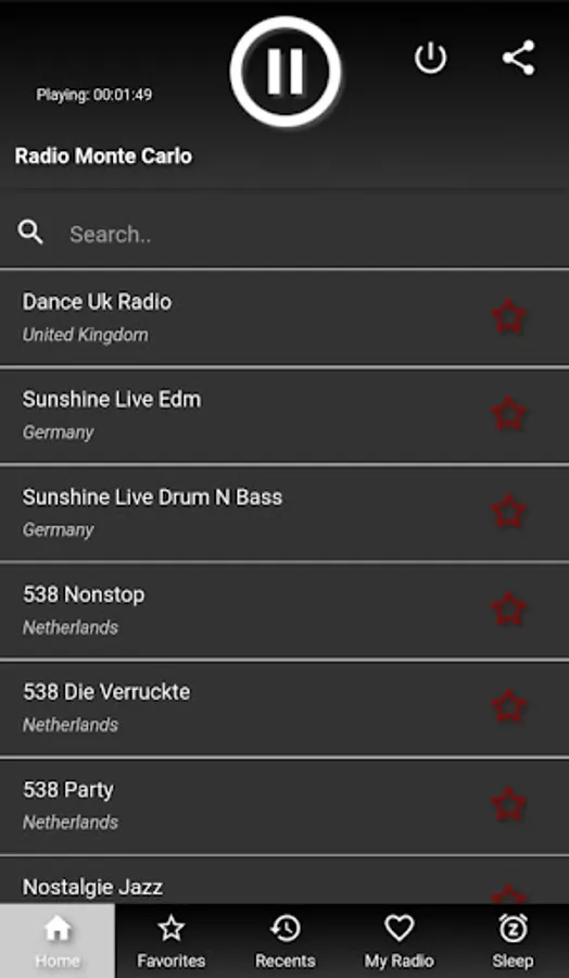 Search by song name, country, genre to easily find a station;