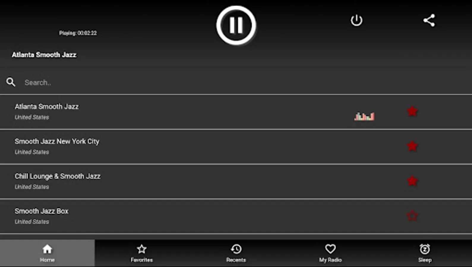 Search by song name, country, genre to easily find a station;