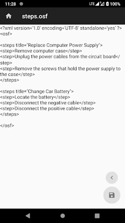 All step procedures can be saved to the local public storage of the device. View all steps in a procedure. When viewing all steps, touch on step to go directly to that step.