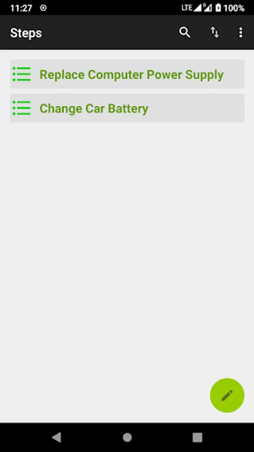 To edit or delete a Step sequence press the Step title for more than one second. Search inside steps by using the search bar.