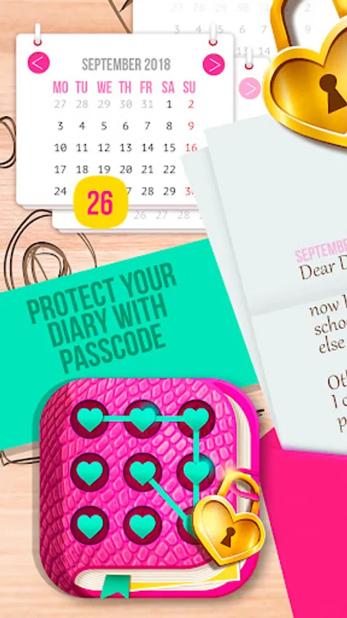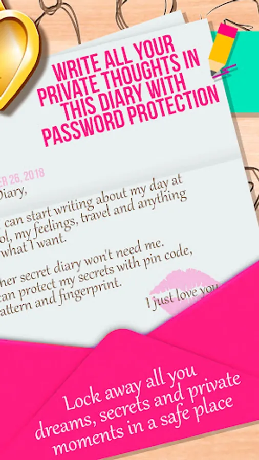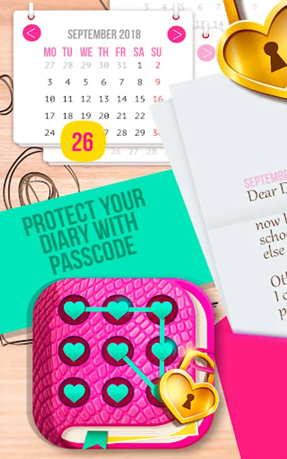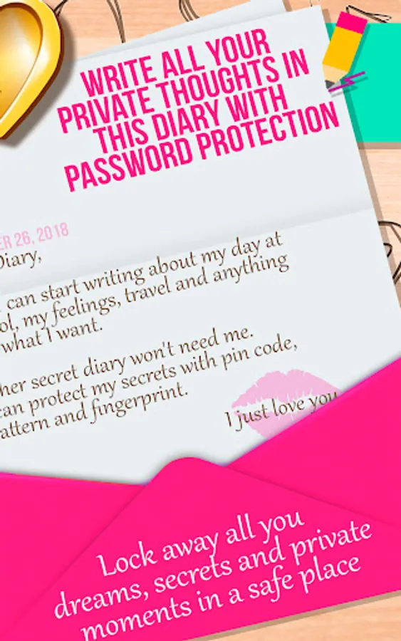 Download My Pink Glitter Secret Diary With Lock to keep your secrets and ideas under lock. Encourage creative writing and have hours of fun with our pink diary for girls with lock. If you are looking for an interesting secret diary application for girls, the best answer for your search is my pink diary with lock. Record memories that can last a lifetime! Download the newest cute pink secret diary with glitter and customize it the way you wish! It's a daily secret planner and a dream journal with password to write every day! Whenever something exciting happens, open your pink lock diary and write it down! Don't forget to choose cute themes for girls and a glitter background to glam up your glitter secret diary!