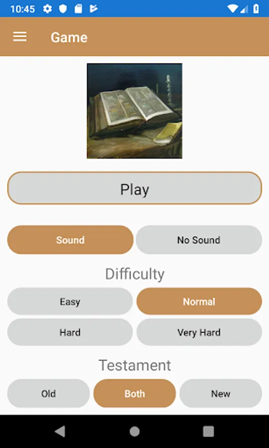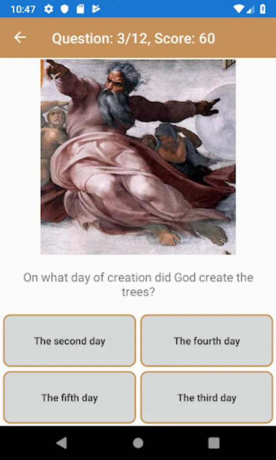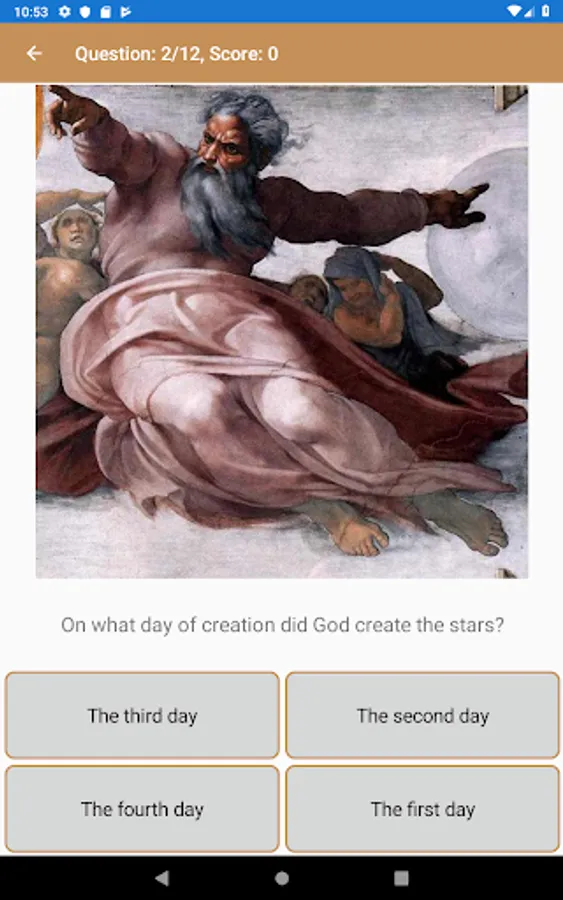 Includes questions both from the Old Testament and New Testament (you can choose to use only one of them in the settings).