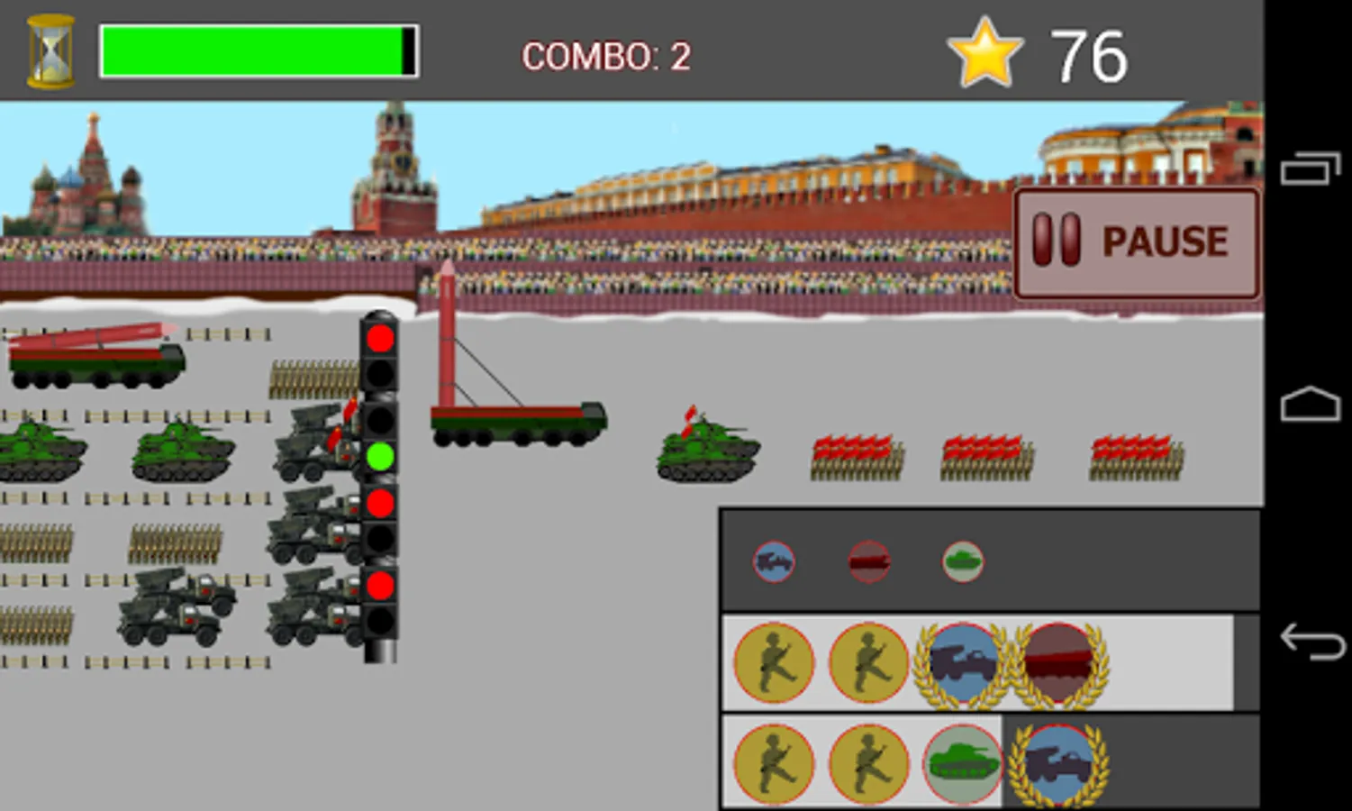 Today our motherland will display it's might in a great military parade! As the Parade Master your duty is to order the marching units as decreed by our wise leader. Let our enemies tremble!