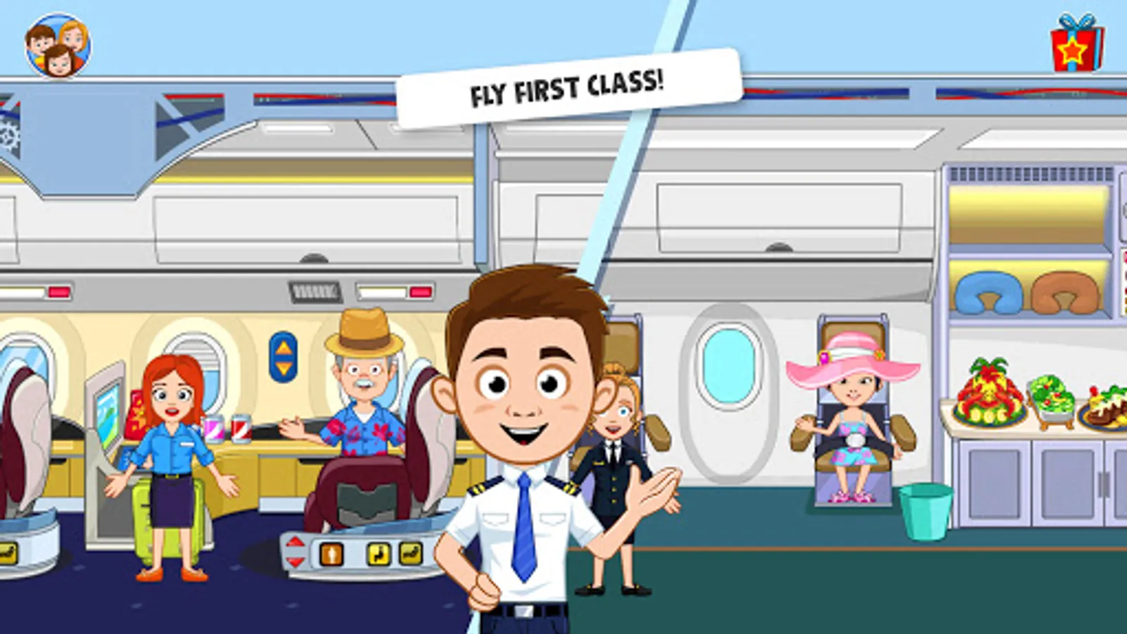 Our Airline games for kids allow you to roleplay as any character in the game! Choose to roleplay as a Pilot and drive the Airplane! Roleplay as a stewardess and serve food in the Airplane or be an Airport Security officer working in airport scanners in this big Airport city! My Town Airplane games for kids have all you need to have fun! All you need is your creativity and imagination to role play your favorite dollhouse stories!
