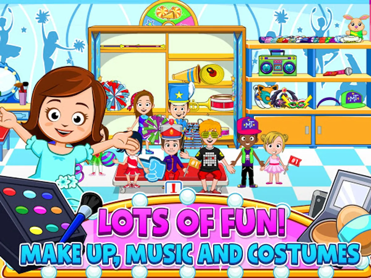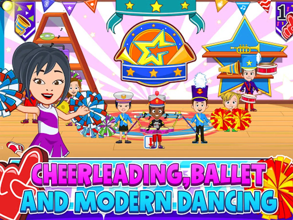 Dress up your favorite characters as cheerleaders and enjoy the dance class and just dance! Customize the dance party stage as you like! All is possible in the My Town Dance School game– cool games for girls! With your imagination, you will have fun for hours!