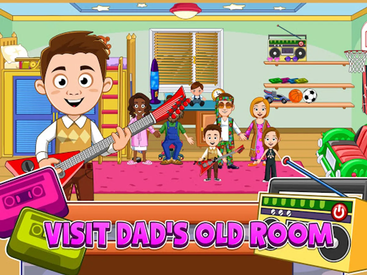 It’s always a fun day when you get to visit your My Town grandparents! How fun to check out where your dad grew up and explore his old room! Perhaps Grandpa could use your help in his basement wood working room, you get to do that when you visit. And we know it’s always fun to cook with Grandma.