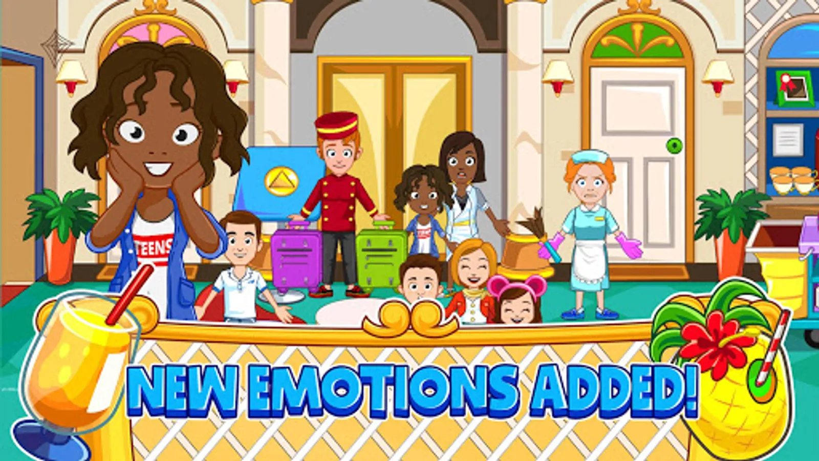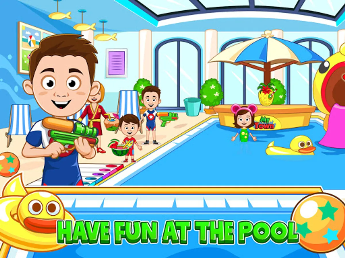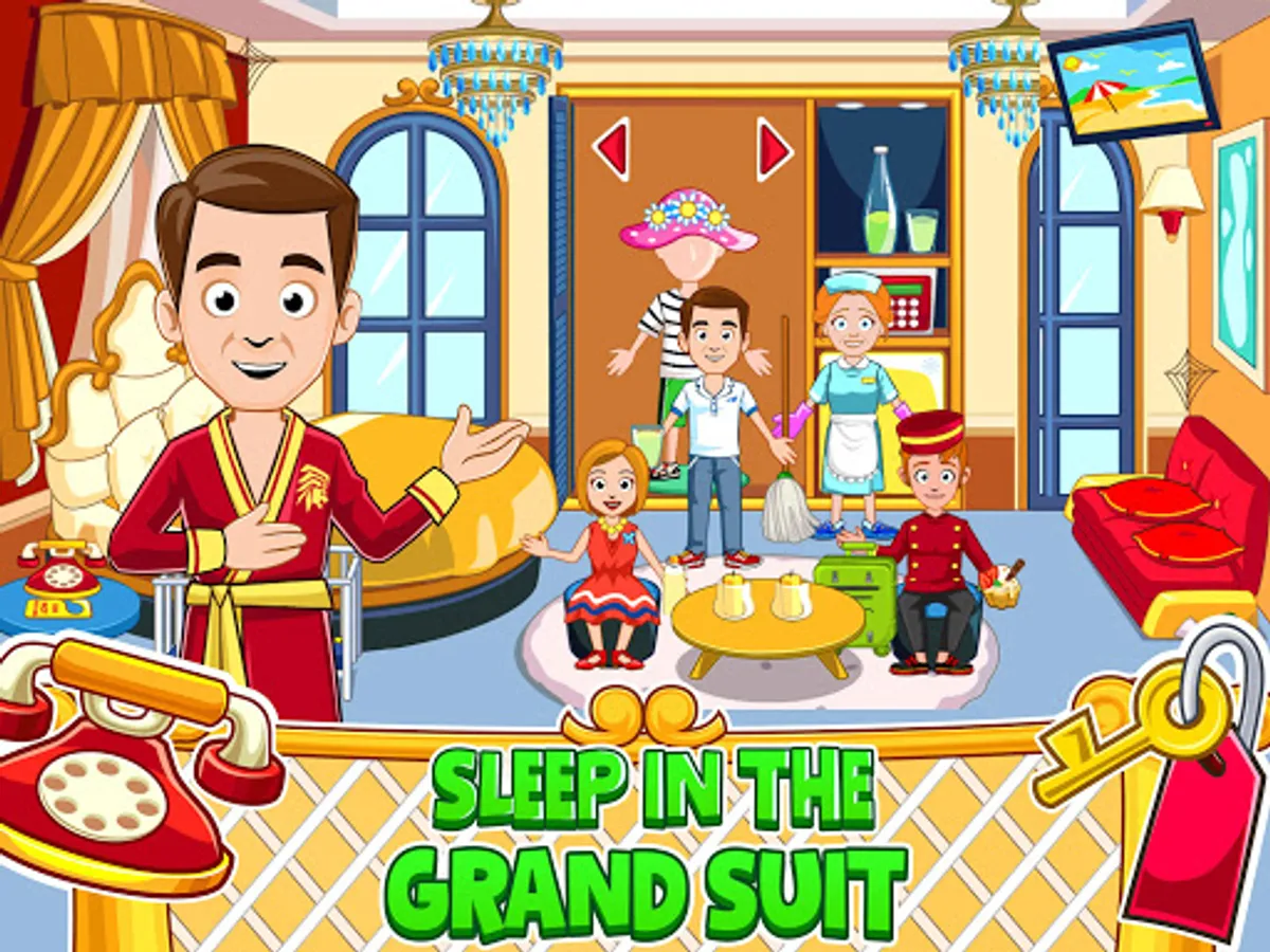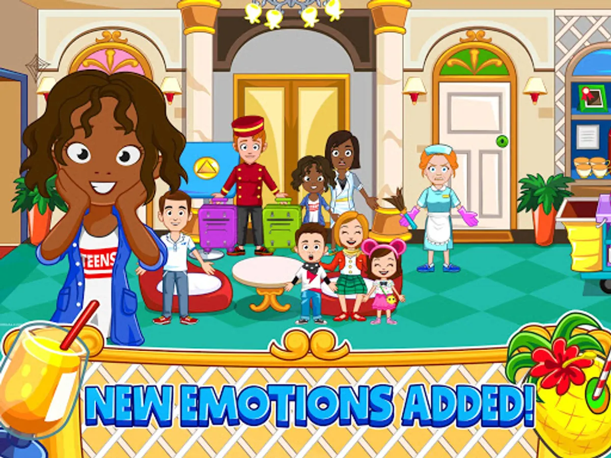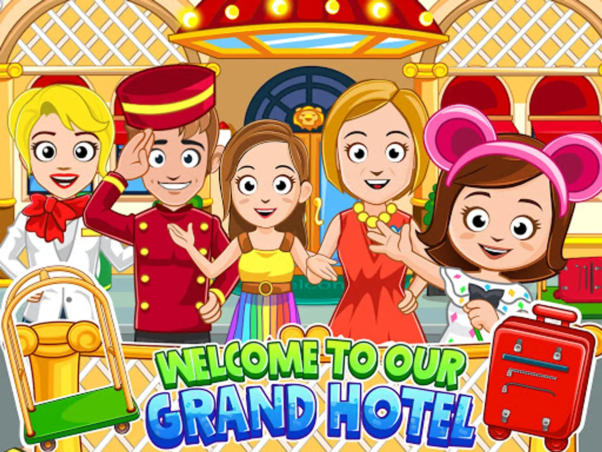 How fun to pack your suitcase and go on a hotel adventure! With many rooms to explore, there are new adventures to be had for hours at the My Town : Hotel. Have fun at the hotel pool and then head back to the grand suite for a bit of relaxation time before picking out new outfits to wear to dinner at the hotel restaurant, where you can sip on taste fruit juice.