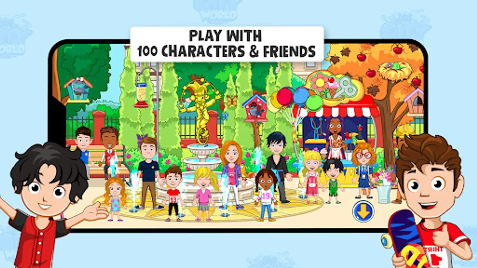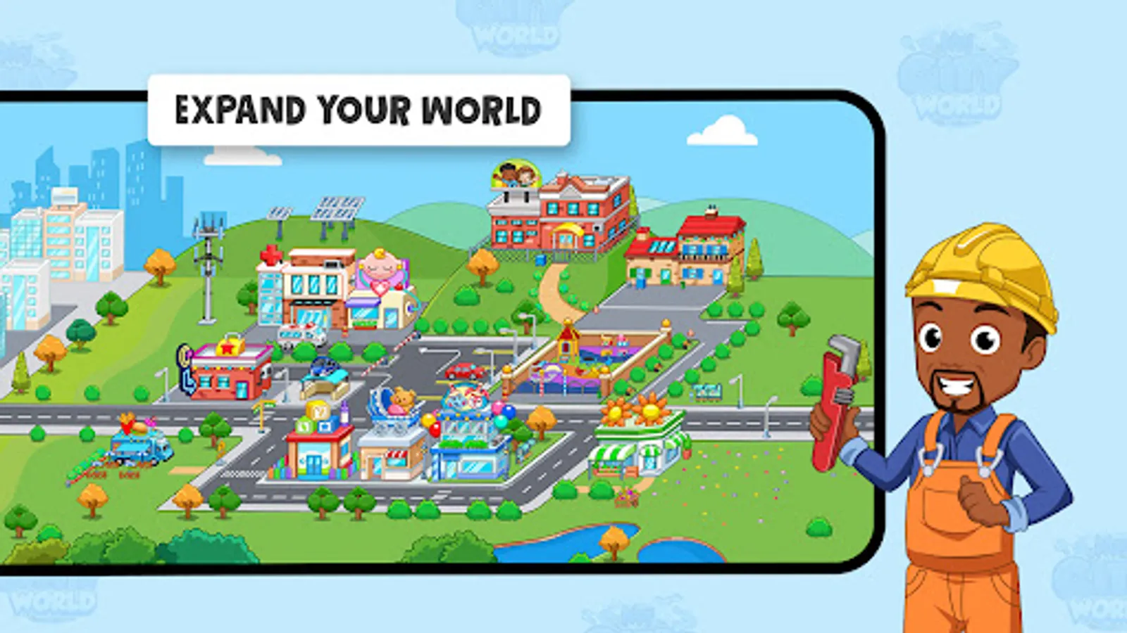 Explore a mega town, roleplay as a Policeman, Firefighter, Doctor or any other of 100+ My Town World doll house characters! Customize characters, unlock playhouses and play city games with friends. Play together and create an ideal world! Manage a city life – have fun!