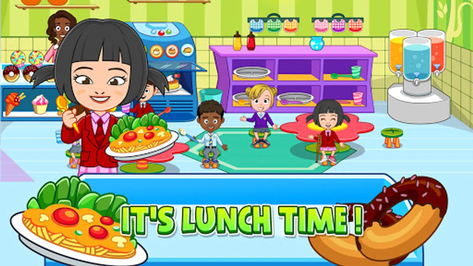 Grab your backpack, it’s time for Preschool! This My Town doll house game offers the full preschool and school experience for children to learn, experience adventures and let their imagination run free. There are hours of fun ahead, whether you want to learn, play games or create your very own stories about life at school. This preschool game offers 8 unique locations for kids to explore. You can dress up the children before they get to school, take care of them when they get hurt at the playground and make lunch in the canteen.