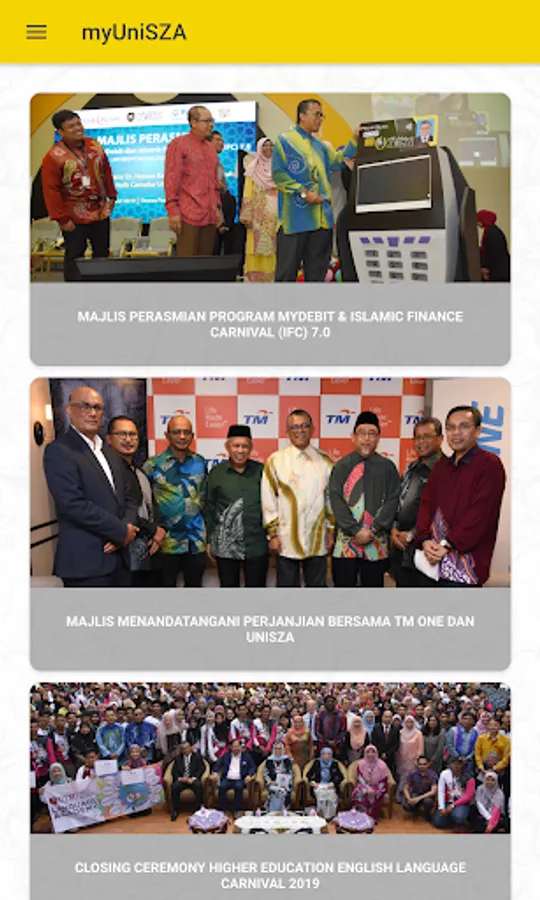 All information about UniSZA such like news, admission, administration, history, and so on. This app is just like a mobile version of official UniSZA website. Everything's mobile!