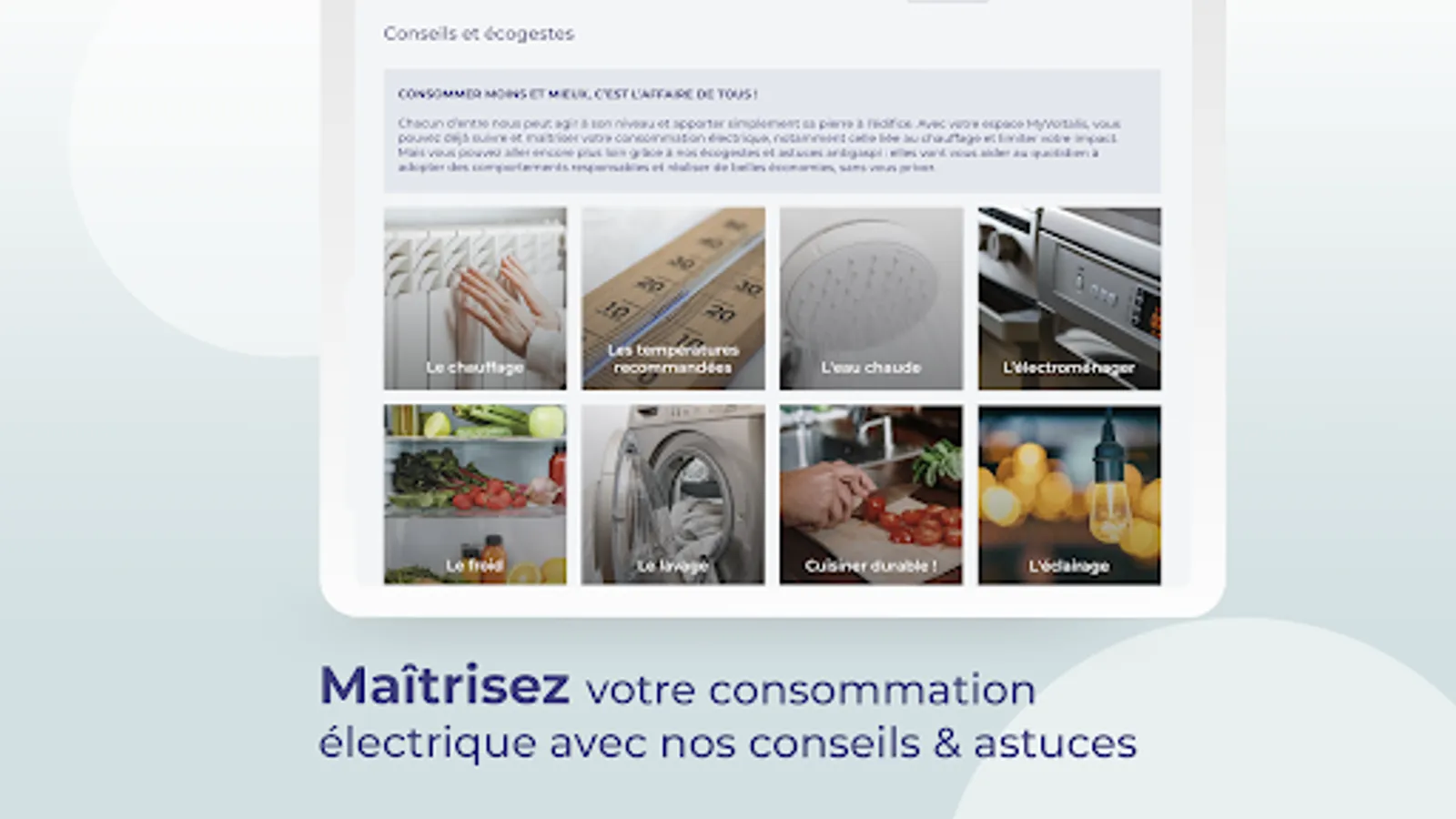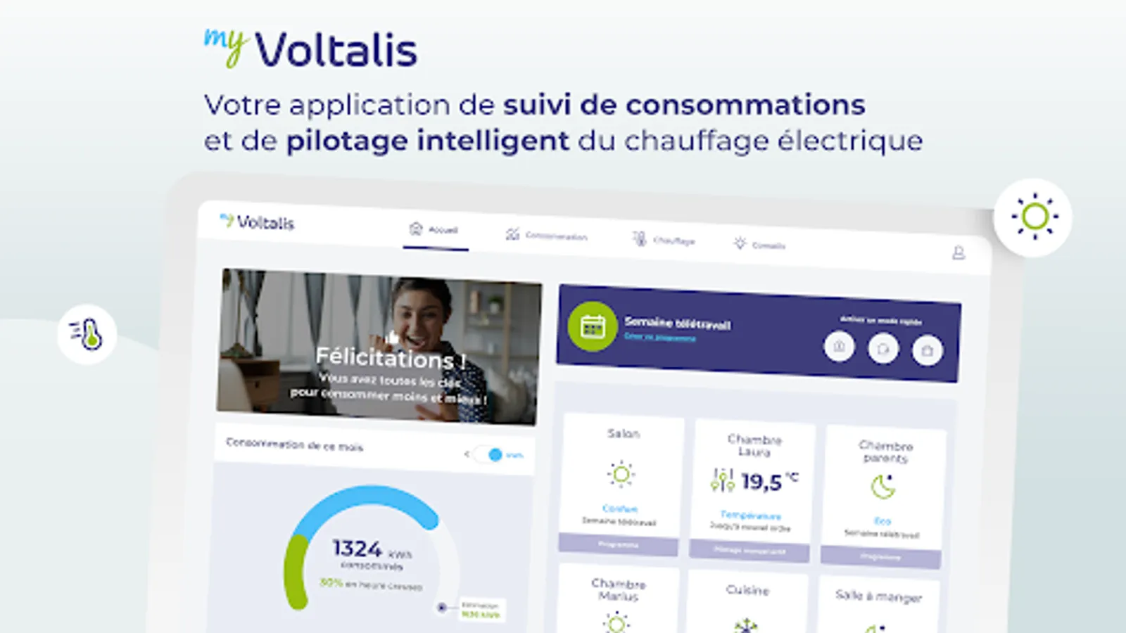 MyVoltalis is the "all-in-one" application, simple and intuitive which will allow you to connect, control and program your electric heating, monitor your consumption and analyze it, benefit from diagnostics and advice... in short, everything to achieve real savings and lower your bills!