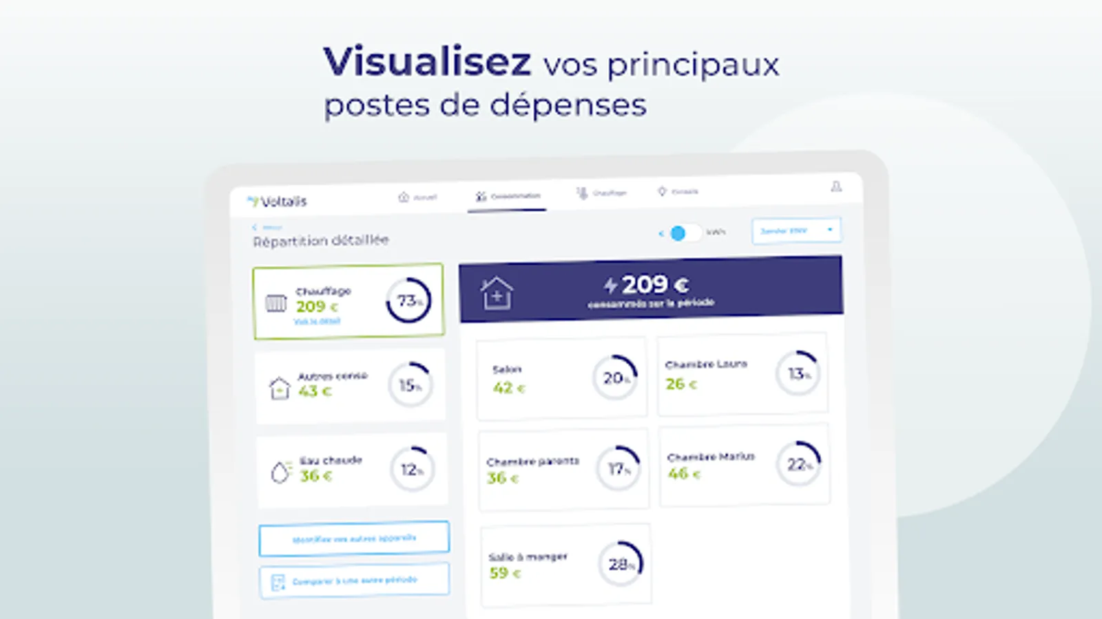 MyVoltalis also offers a complete dashboard of your home's electricity consumption, to better understand and optimize it:
