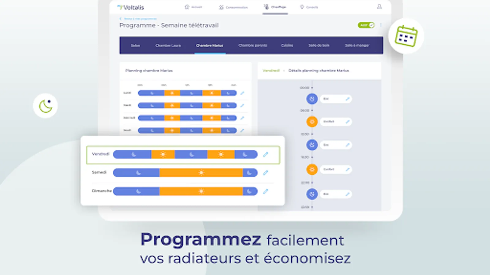 With MyVoltalis, you can easily regulate your electric heating room by room, according to your needs and habits, to improve your comfort and save money.
