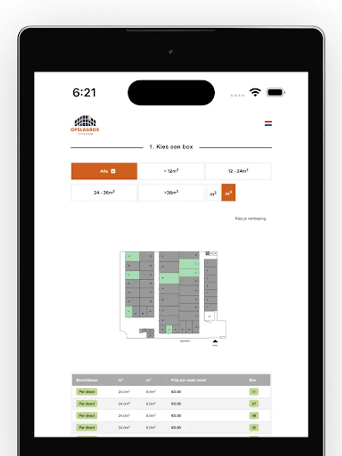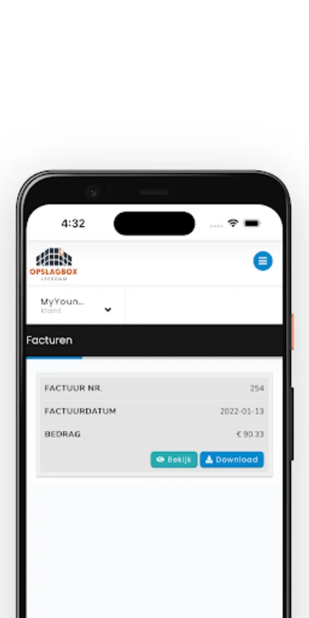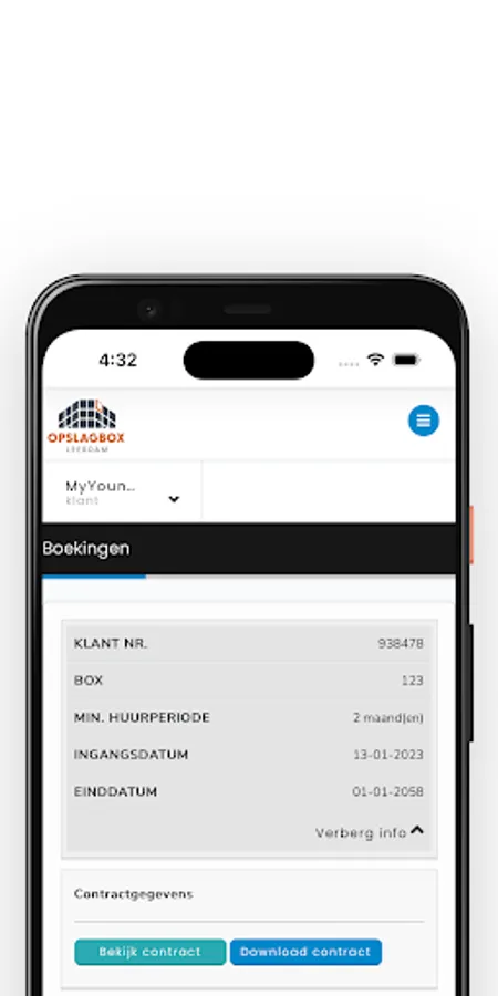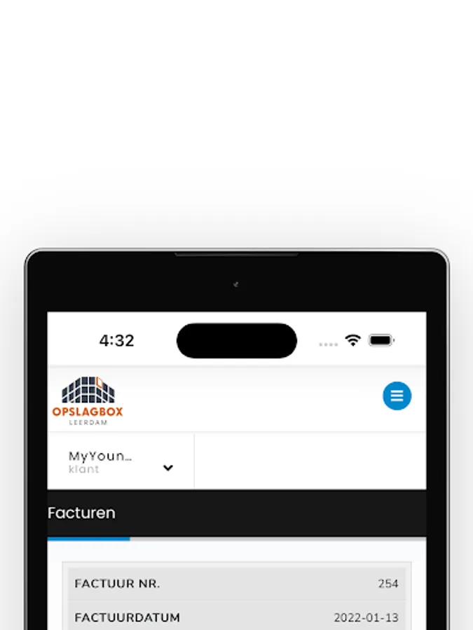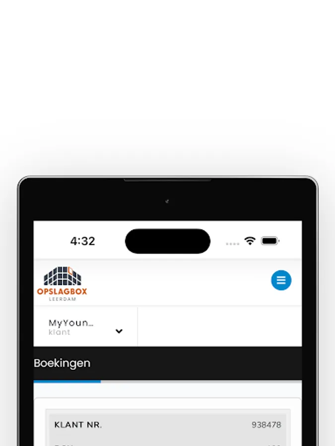The Storage Box Leerdam App is a personal app for Storage Box Leerdam customers. When you rent a unit at Storage Box Leerdam, you can manage your bookings via the app, view and download invoices, and also open the access module with 1 push of a button.