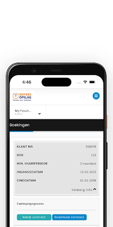 The Siefkes Storage App is a personal app for Siefkes Storage customers. When you rent a unit from Siefkes Storage, you can manage your bookings via the app, view and download invoices, and also open the access module with 1 push of a button.