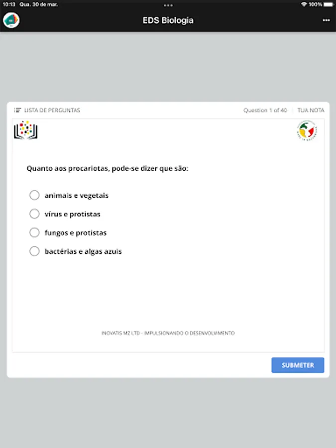 Predefined exams are already prepared exams where the student will answer a past exam already taken in Mozambican education, to acclimate the student to the exam system and allow the complete visualization of all the questions.