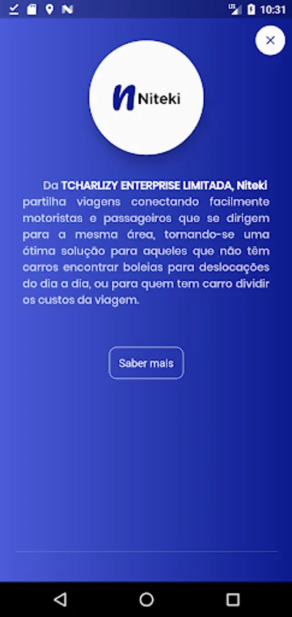 Niteki is a mutual help initiative that aims to unite, on the same platform, a driver who has one or more seats available in his vehicle and a passenger who has the need to travel to work/home and college/home and vice versa (which share the same destination or the same direction).