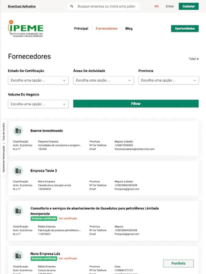 MSMEs Database is a catalog aimed at displaying products, services and business communication among MSMEs, as well as promoting access to opportunities provided by the extractive industry market in Mozambique.