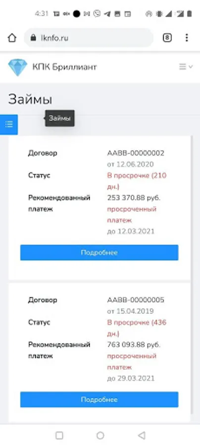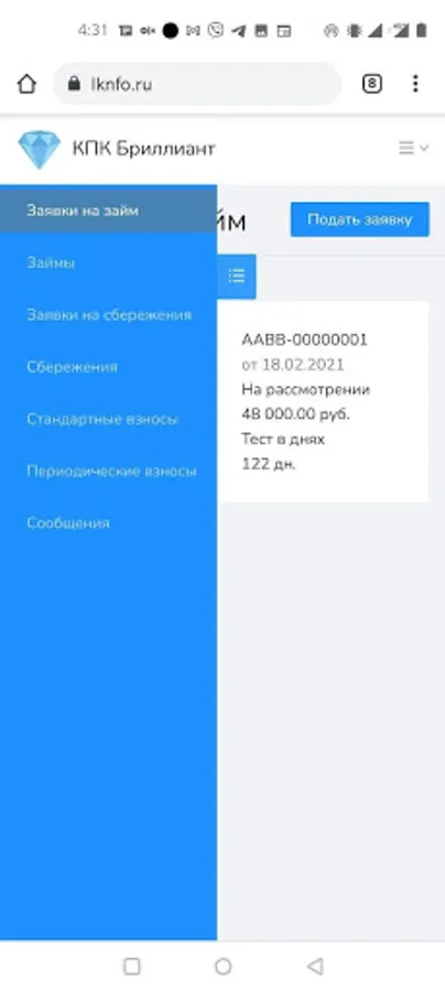 Demo application to familiarize potential users with the functionality of the personal account and the mobile application of the PDA Brilliant. The program does not provide financial services and does not accept payments. The application allows you to: submit applications for loans, receive information about the state of the account, leave applications.