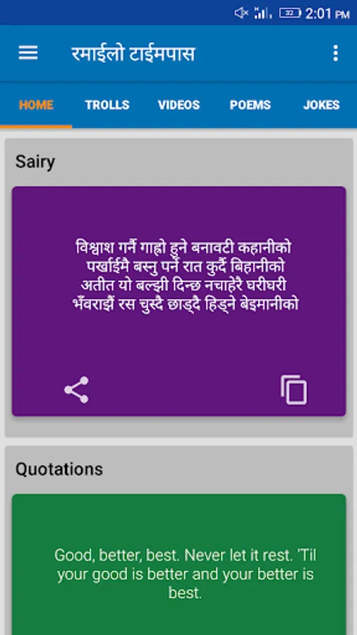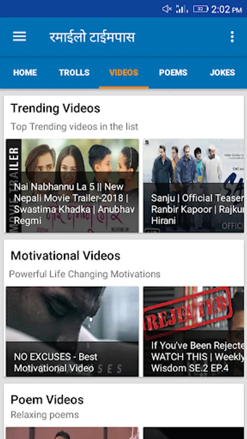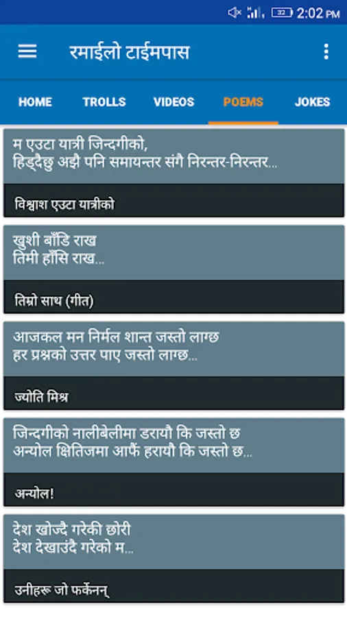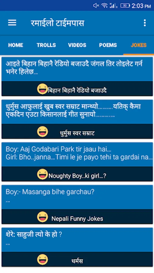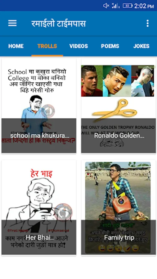 रमाईलो टाईमपास has collection of Jokes to get you through your day, powerful and relaxing poems. Share the funny status, trolls among your friends and have fun. Besides it has collection of videos in a category of: