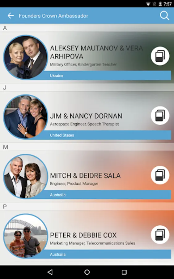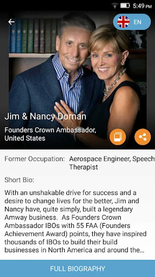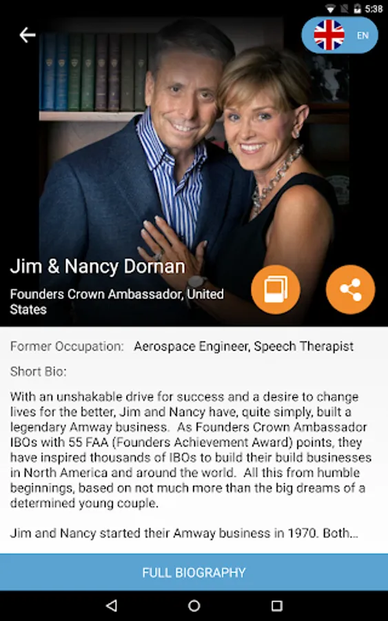 Share in and celebrate with the achievements of Network TwentyOne affiliated Amway leadership from around the world. Available in 18 languages with leadership profiles from over 28 countries, this app allows you to enjoy and share leadership biographies and images via text/SMS and email.
