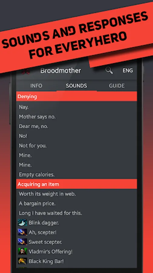 - Replicas, responses, sounds of all the heroes that you can download and set on notification