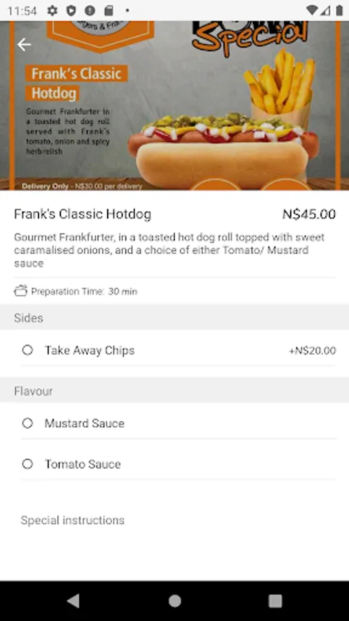• For a delivery order, a Tap a Meal driver will collect the order and deliver to you anywhere in Windhoek (Namibia)